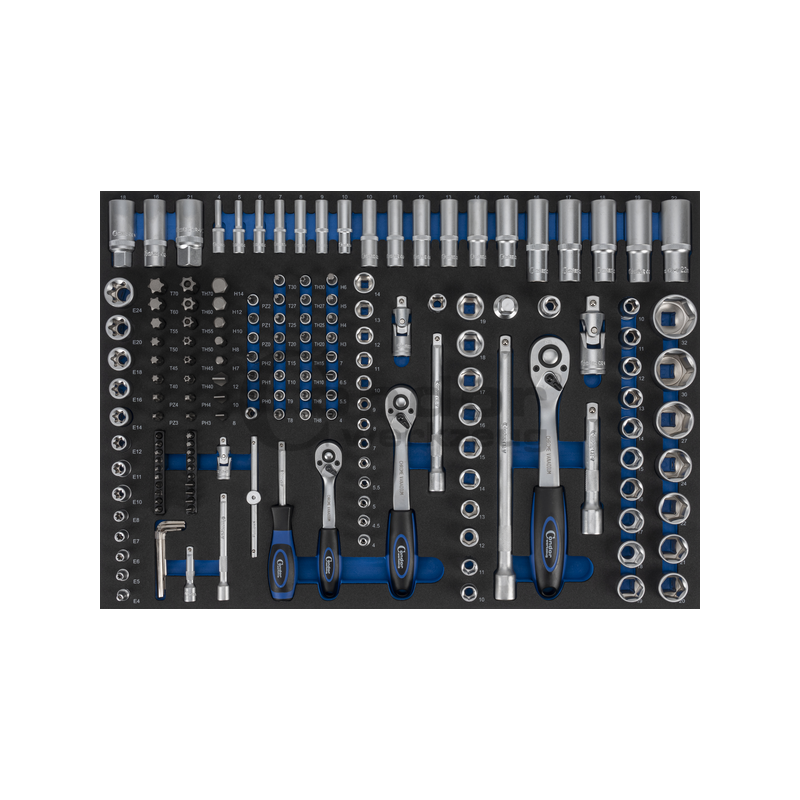 Įrankių komplektas 1/4+3/8+1/2 171dalies, su dėklu vežimėliui